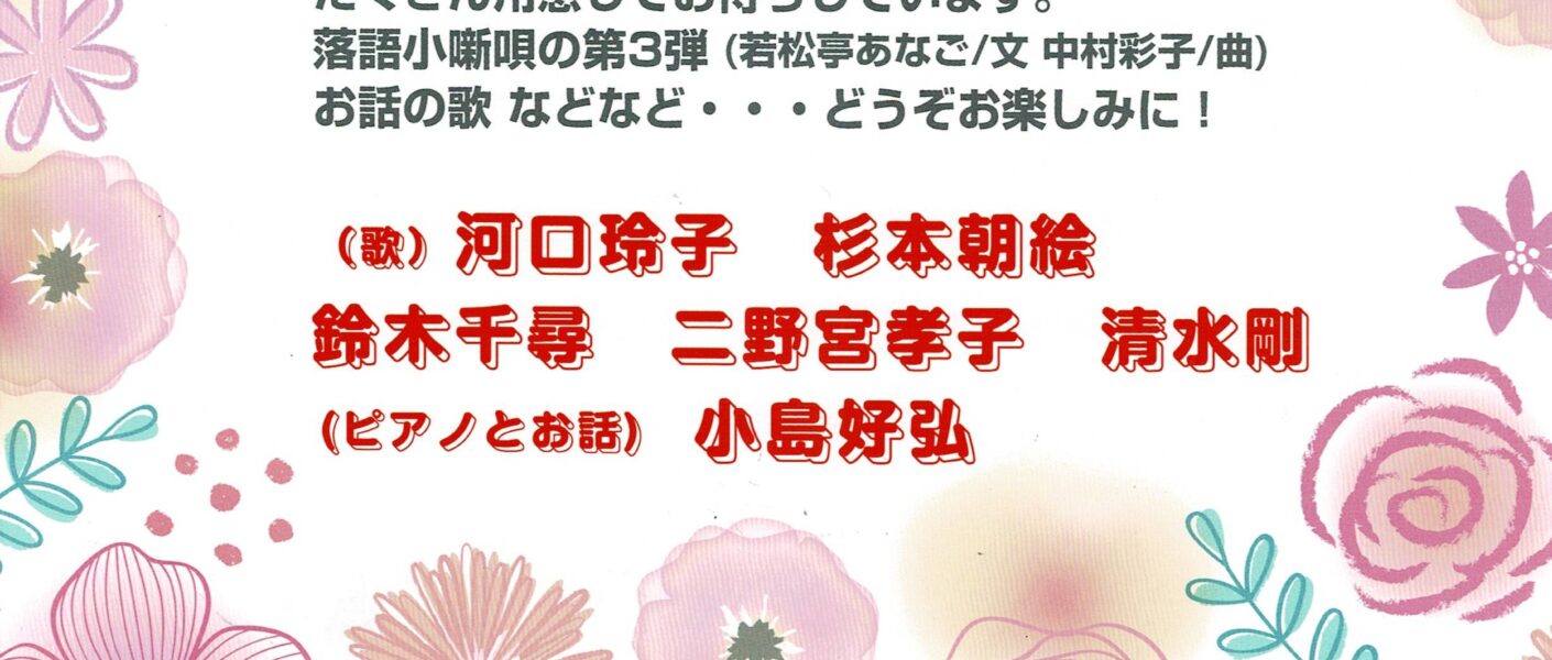 出演:河口玲子、杉本朝絵、鈴木千尋、二野宮孝子、清水剛(歌)、小島好弘(ピアノとお話)